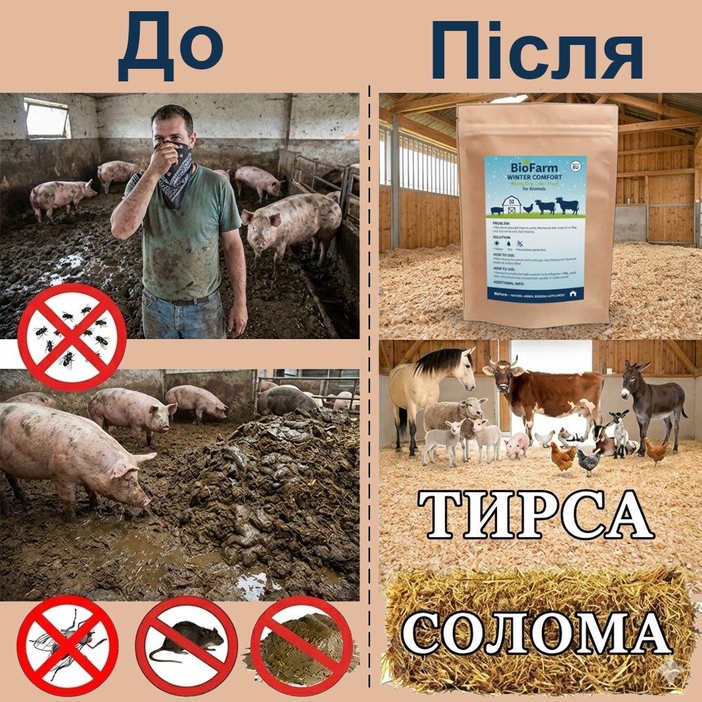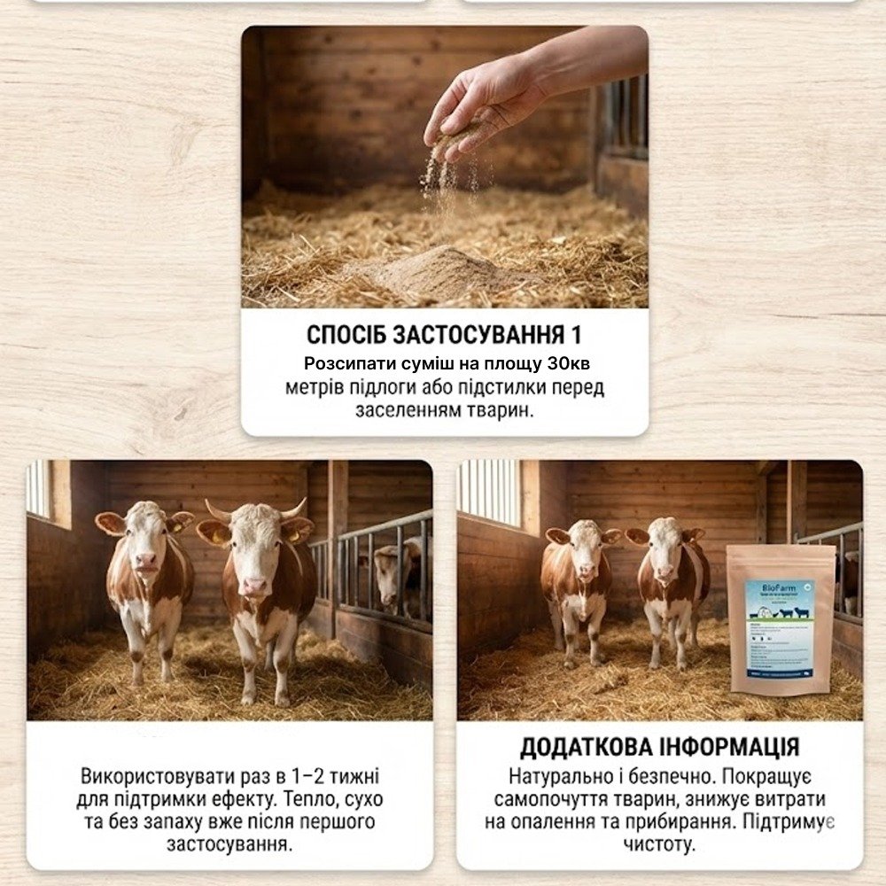 Фермерські тварини часто страждають від сирості, бактерій та неприємного запаху у стійлах. Це створює стрес, погіршує здоров’я та знижує продуктивність.