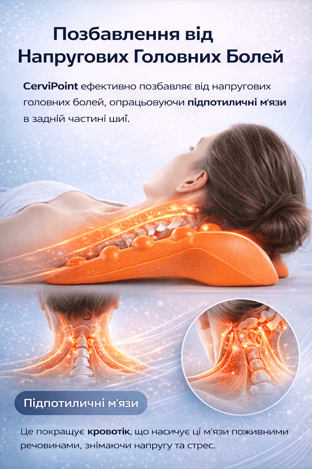 Завдяки анатомічній формі пристрій точно впливає на проблемні зони, покращує кровообіг і допомагає швидко відновити комфорт у шиї та верхній частині спини