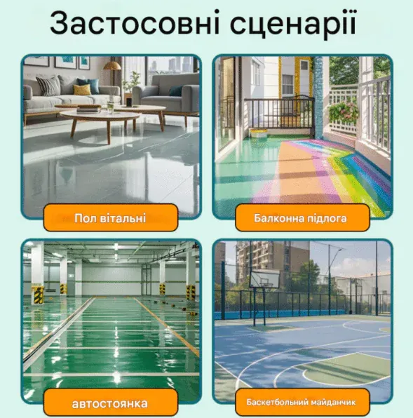 Епоксидна фарба не тільки забезпечує функціональність, але й додає приміщенню сучасного та охайного вигляду. Вона доступна в різних кольорах, що дозволяє підібрати найкраще рішення для вашого інтер’єру. Покриття має глянсовий або матовий фініш, що додатково покращує зовнішній вигляд підлоги.