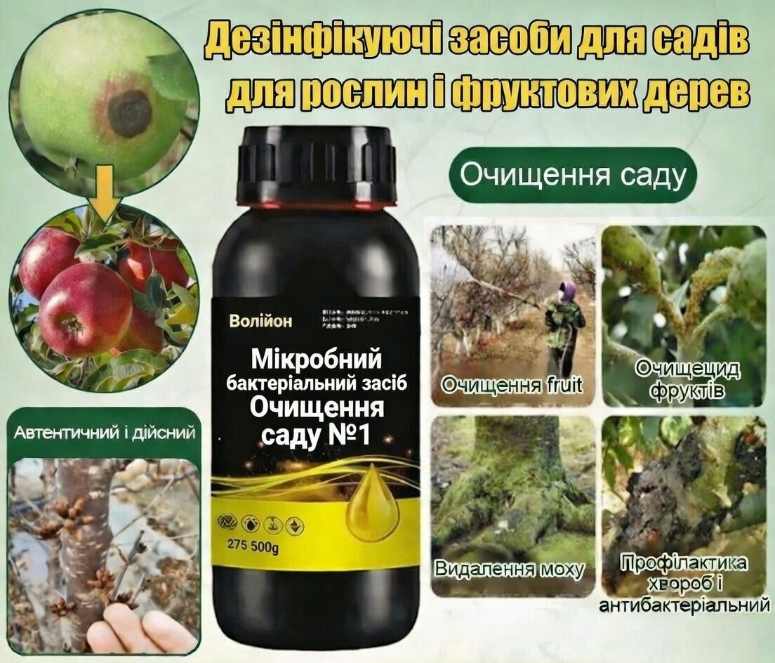 Після двох обробок «Очищення саду №1» мох на стовбурах відпав сам, яблука стали чистими без плям, а шкідників майже не видно. Дуже рада, що безпечний для дітей і плодів!